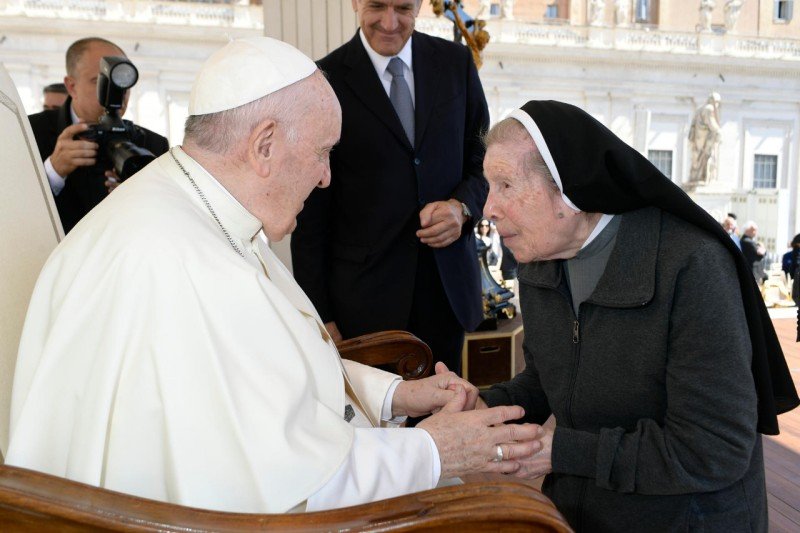 Kutipan Kitab Suci yang baru saja kita dengarkan adalah bagian penutup dari Kitab Ayub, sebuah karya sastra klasik yang mendunia. Dalam perjalanan katekese tentang usia lanjut ini, kita bertemu dengan Ayub. Kita menemukan Ayub sebagai saksi iman yang tidak menerima sebuah “karikatur” tentang Allah, tetapi menyerukan protes di hadapan kejahatan sampai Allah menaggapi dan menunjukkan wajah-Nya. Dan pada akhirnya, seperti biasa, Allah menjawab Ayub dengan cara mengejutkan: Dia menunjukkan kemuliaan-Nya kepada Ayub tanpa menghancurkannya, melainkan dengan kelembutan ilahi, seperti yang selalu dilakukan Allah, yaitu dengan kelembutan. Kisah ini perlu dibaca dengan baik, tanpa prasangka, tanpa stereotip, untuk memahami kekuatan seruan Ayub. Alangkah baiknya jika kita belajar dari Ayub bagaimana mengatasi godaan moralisme ketika dihadapkan dengan kejengkelan dan kepahitan atas rasa sakit karena kehilangan segala-segalanya.