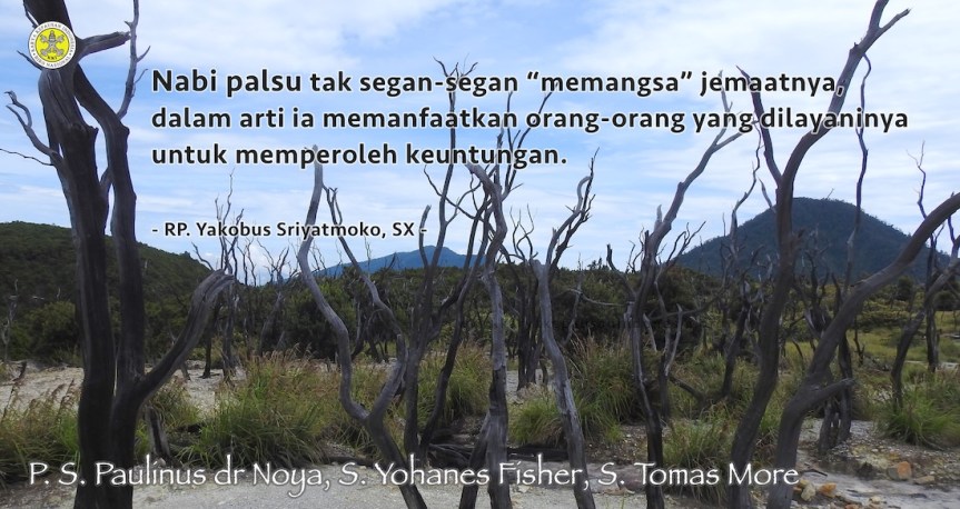 Dalam bacaan Injil yang kita renungkan hari ini (Mat. 7:15-20), Tuhan Yesus mengajak para murid-Nya untuk waspada terhadap nabi-nabi palsu yang datang kepada mereka dengan menyamar seperti domba, padahal sesungguhnya mereka adalah serigala yang buas.