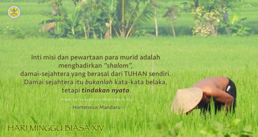 Fourth, the urgency and workload in God’s field demand a quick response. All Lord’s messengers should move fast, without wasting time for chit-chat greetings. They proclaim and bring God’s shalom, it is not a common shalom. Therefore, they don’t need to be bothered or worried about the budget and means of proclamation. Gospel preachers should be satisfied with the means and hospitality from the people welcoming them, without seeking another comfort (v. 7).