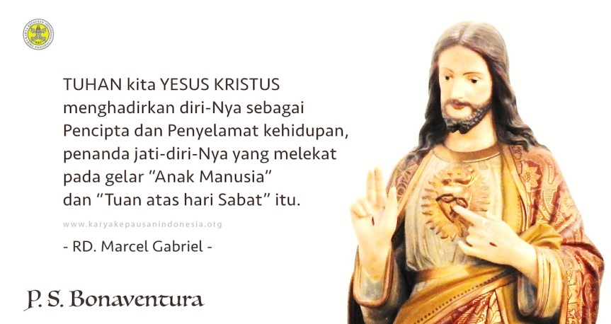 Demikian sebagaimana Allah, Yahweh menampakkan diri kepada Raja Hizkia dan rakyat Yehuda bahwa Dialah Pencipta dan Penyelamat kehidupan. Demikian juga Yesus melakukan hal yang sama kepada orang-orang di masa hidup-Nya, terutama kepada para penegak hukum, yang menjauhkan umat dari belas kasih Allah, dengan cara menegakkan hukum hanya kepada soal ada atau tidaknya pelanggaran hukum terkait ketentuan hukum tertentu. Dan dengan cara itu, Tuhan kita Yesus Kristus juga menghadirkan diri-Nya sebagai Pencipta dan Penyelamat kehidupan, penanda jati-diri-Nya yang melekat pada gelar “Anak Manusia” dan “Tuan atas hari Sabat” itu. Semoga pengajaran Yesus tentang Hukum Sabat ini menjadikan kita sebagai orang-orang yang berbelas kasih satu kepada yang lain. Amin. (RMG)