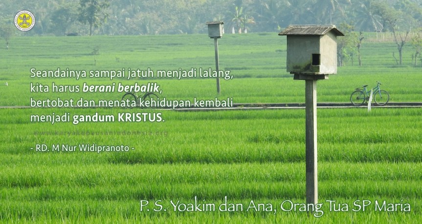Bagaimana dengan kita? Kita adalah gandum Kristus. Dalam dinamika kehidupan, tidak jarang kita berada di tengah-tengah situasi sulit bahkan hidup bersama dengan godaan kedosaan dan kejahatan. Jangan biarkan diri kita jatuh dalam pencobaan itu. Seandainya toh sampai jatuh menjadi lalang, kita harus berani berbalik, bertobat dan menata kehidupan kembali menjadi gandum Kristus.**(NW)