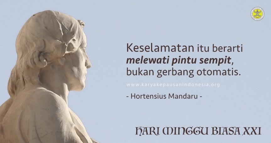 Fortunately Jesus didn’t give a direct answer. Instead of making a dogma, He used parable and metaphor. First, is the narrow door. Jesus challenged us by saying: Strive to enter through the narrow door! The word “strive” here relates to the Greek word “agony”: referring to the difficult and painful struggling. The life of faith is a constant struggle with much pain and suffering, to achieve salvation. The Lord knows that certainty will make us naive and passive. His promise of salvation is often claimed as the status that has belonged to us and can be proud of. Therefore, Jesus underscores the continuous and enduring human responsibility. Do not stop striving! Salvation is entering through a narrow door, not an automatic gate. Living in faith is continuously striving against the devil and trusting in God. That is the pattern that Jesus showed in Gethsemane, as He experience the agony Himself (Luk. 22:42): struggling to give up His will for surrendering to God’s plan!