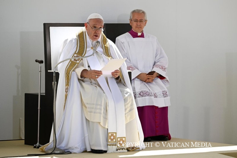 Namun sebelumnya, saya ingin menyapa Anda semua yang telah berpartisipasi, termasuk semua yang harus melakukannya dari jarak jauh, di rumah, atau di rumah sakit, atau di penjara. Saya berterima kasih kepada otoritas sipil atas kehadiran mereka dan atas upaya yang dilakukan untuk mengatur ini semua. Saya dengan hormat berterima kasih kepada Kardinal Uskup Agung dan para Uskup lainnya, imam, pria dan wanita yang menjalani hidup bakti, keluarga, paduan suara dan semua sukarelawan, serta penegak hukum dan pasukan keamanan.
