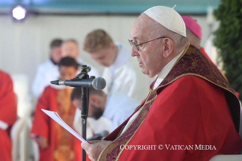 Saudara dan saudari, inilah jalan, jalan menuju keselamatan kita, kelahiran kembali dan kebangkitan kita: untuk melihat Yesus yang disalibkan. Dari ketinggian salib, kita dapat melihat hidup kita dan sejarah bangsa kita dengan cara baru. Karena dari salib Kristus kita belajar kasih, bukan kebencian; belas kasihan, bukan ketidakpedulian; pengampunan, bukan balas dendam. Lengan Yesus yang terentang adalah pelukan kasih yang lembut yang dengannya Allah ingin memeluk kita. Mereka menunjukkan kepada kita cinta persaudaraan yang kita dipanggil untuk memiliki satu sama lain dan untuk semua orang. Mereka menunjukkan kepada kita jalan, jalan Kristiani. Ini bukan cara pemaksaan dan pemaksaan, kekuasaan dan status; tidak pernah salib Kristus diacungkan terhadap saudara dan saudari kita yang untuknya Dia memberikan nyawanya! Cara Yesus, jalan keselamatan berbeda: itu adalah jalan cinta kasih yang rendah hati dan universal, tanpa “seandainya”, “dan” atau “tetapi”.
