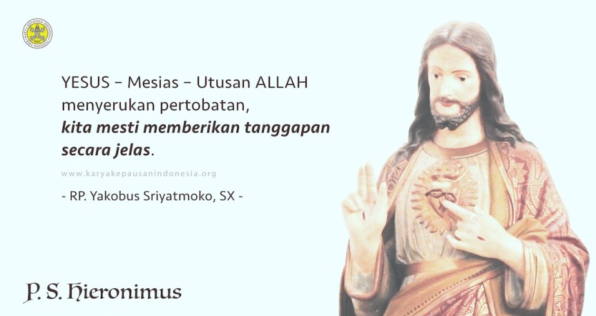 Pesan apa yang bisa kita tangkap dari perikop ini? Di depan Yesus – Mesias – Utusan Allah yang menyerukan pertobatan, kita mesti memberikan tanggapan secara jelas. Menerima sabda itu dan menjalankannya atau menolaknya. Berbahagialah yang menerima Yesus dan sabda-Nya dengan sungguh-sungguh! Menjadi Katolik-Kristen tidak cukup hanya dibaptis dengan air dan mendapat surat baptis. Kalau kita percaya kepada Kristus, dari hari ke hari kita mesti melakukan pertobatan seperti yang Yesus minta kepada kita, “Jadilah sempurna seperti Bapamu di sorga sempurna adanya” (Mat. 5:40). Dengan demikian kita tidak akan mendapatkan kecaman seperti orang-orang di Khorazim, Betsaida dan Kapernaum melainkan akan mendapatkan pujian, “Berbahagialah kamu karena kamu telah mendengarkan sabda-Ku dan menjalankannya!”