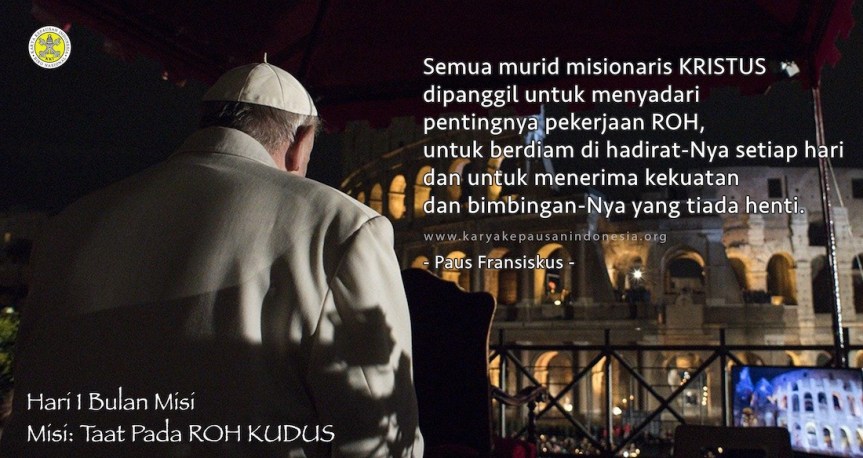 Paus Fransiskus untuk Hari Misi Sedunia 2022 berpesan: Semua murid misionaris Kristus dipanggil untuk menyadari pentingnya pekerjaan Roh, untuk berdiam di hadirat-Nya setiap hari dan untuk menerima kekuatan dan bimbingan-Nya yang tiada henti.