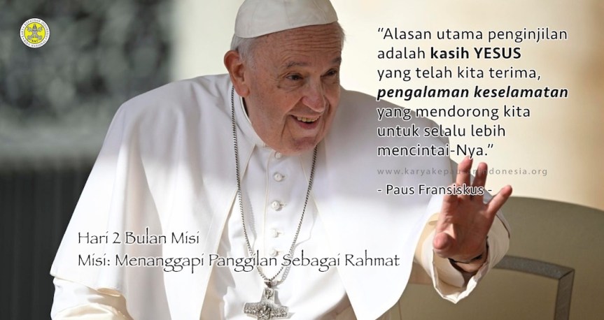 Pesan Paus Fransiskus untuk Hari Misi Sedunia 2022, “Alasan utama penginjilan adalah kasih Yesus yang telah kita terima, pengalaman keselamatan yang mendorong kita untuk selalu lebih mencintai-Nya” (Evangelii Gaudium, 264)