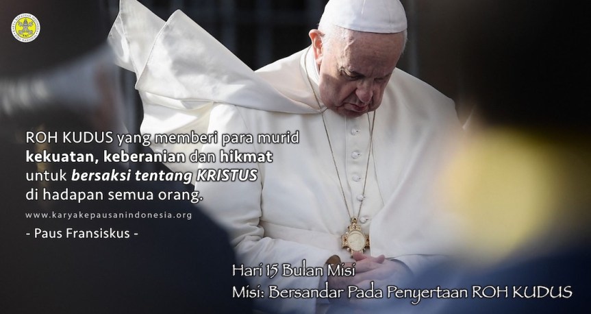 Paus Fransiskus terkait penyertaan Roh Kudus ini dalam pesannya untuk Hari Misi Sedunia 2022 mengatakan, “Setelah turunnya Roh Kudus atas para murid, tindakan pertama adalah mereka bersaksi. Padahal sebelumnya mereka lemah, takut dan menutup diri. Roh Kudus yang memberikan mereka kekuatan, keberanian dan hikmat untuk bersaksi tentang Kristus di hadapan semua orang.”