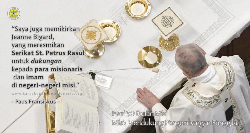 Itulah sekilas mengenai tokoh pendiri Serikat Kepausan Pengembangan Panggilan. Bukan hanya Paus Leo XIII yang memberi perhatian pada mereka, namun mereka juga dekat di hati Paus Fransiskus. Bapa Suci Paus Fransiskus dalam pesannya untuk Hari Misi Sedunia 2022 mengatakan, “Saya juga memikirkan Jeanne Bigard, yang meresmikan Serikat St. Petrus Rasul untuk dukungan kepada para misionaris dan imam di negeri-negeri misi.”