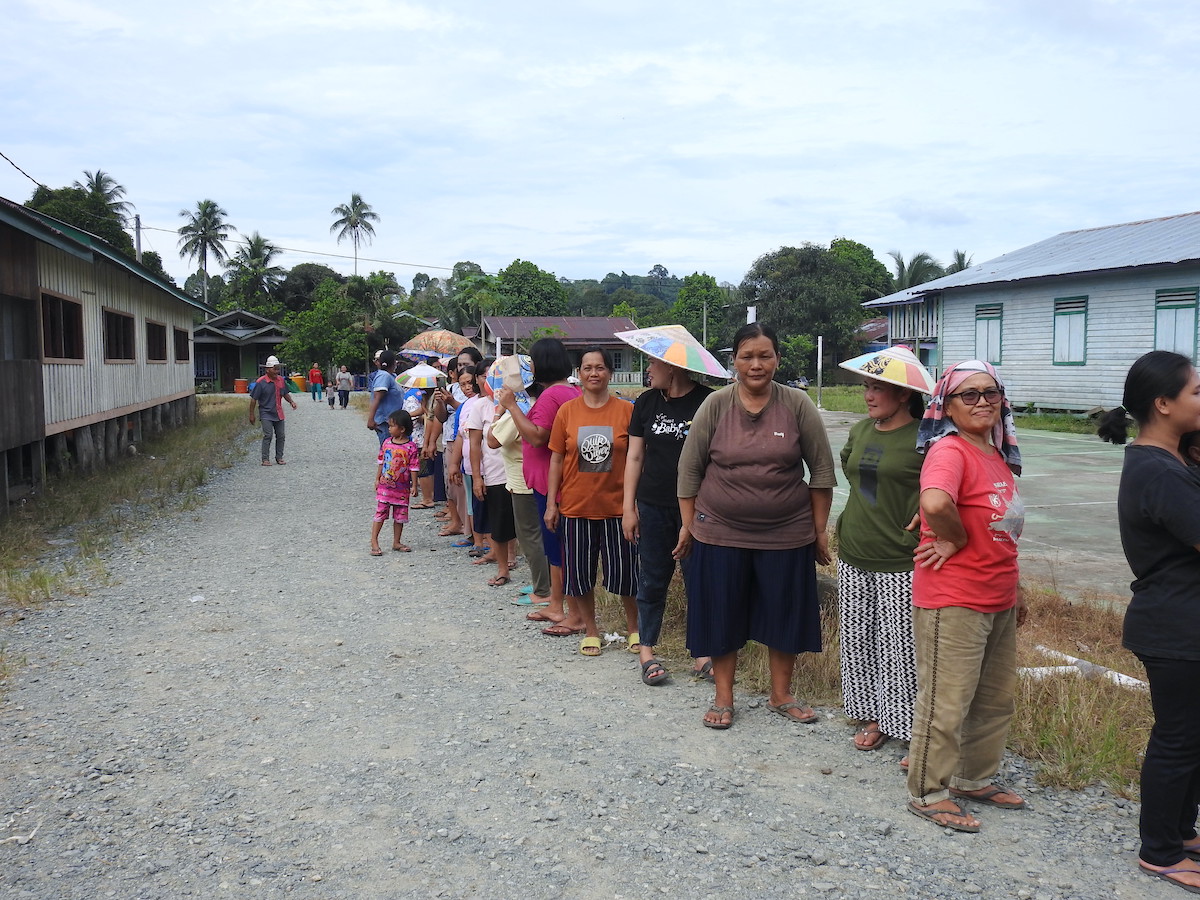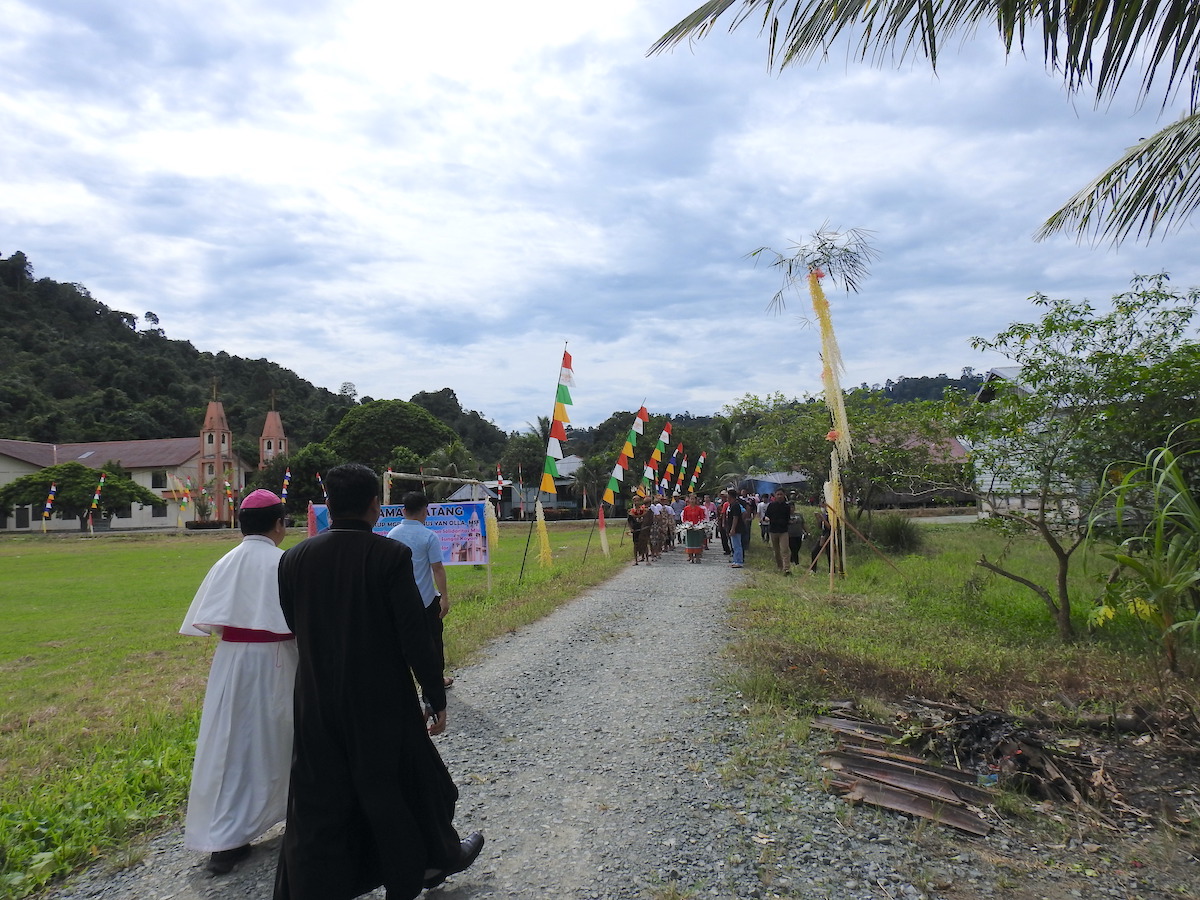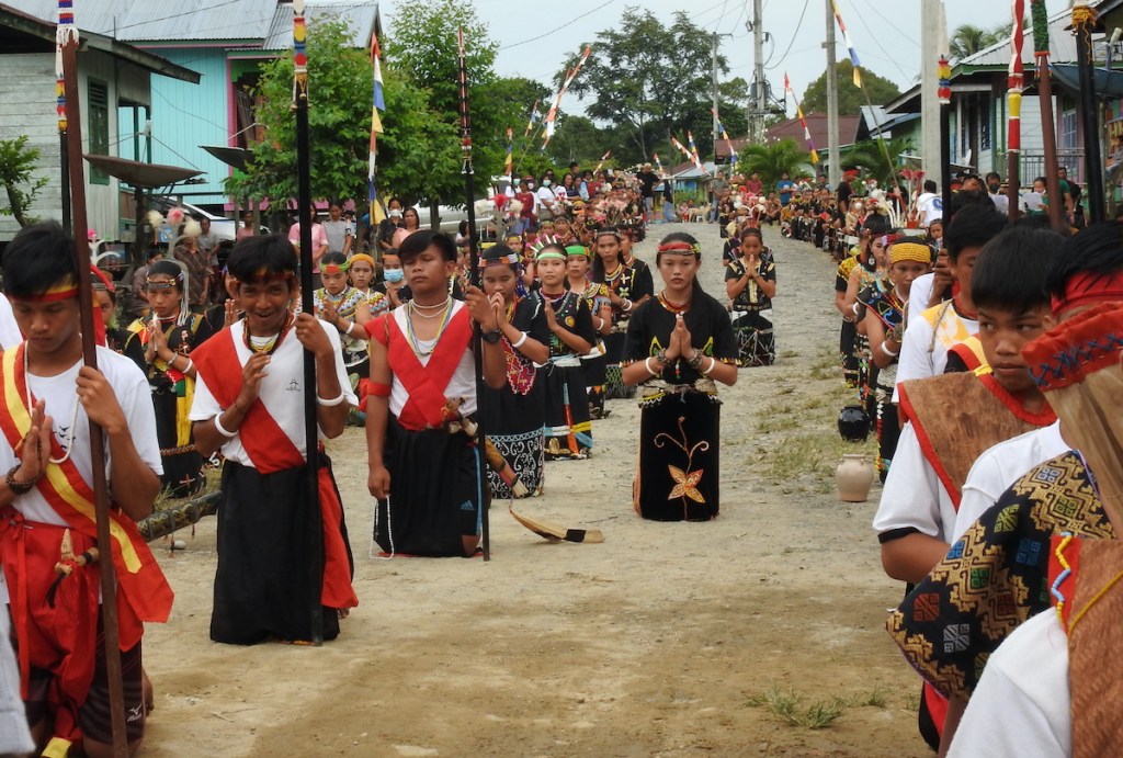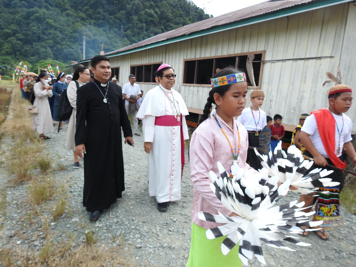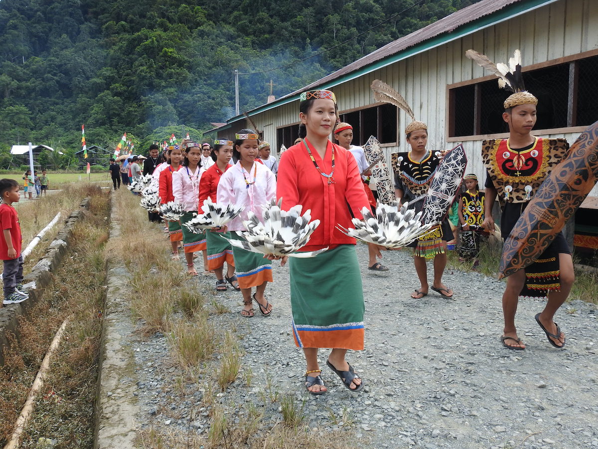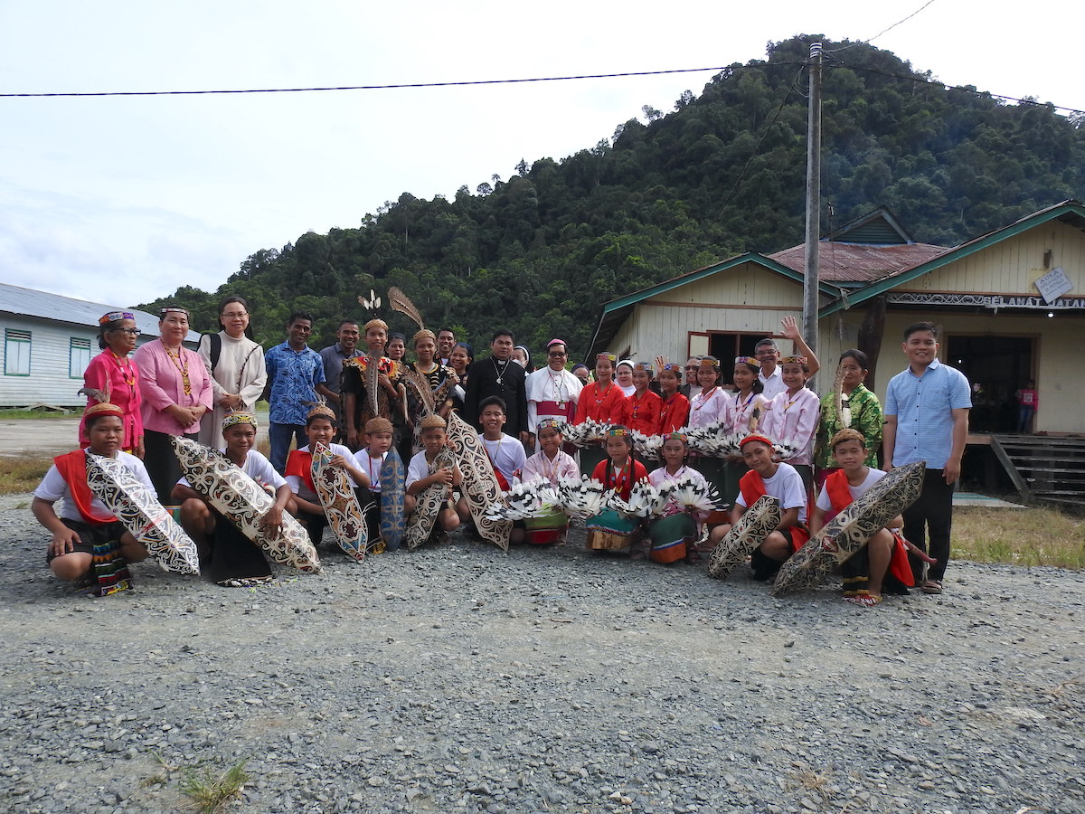 Penyambutan dilakukan meriah dengan tarian khas Dayak oleh para remaja. Barisan umat berjejer di sepanjang jalan hingga mendekati aula tempat berkumpul. Umat di paroki ini sebagian besar berasal dari suku Dayak Kayan. Menurut Pastor Paroki, hampir seluruh umat memiliki hubungan kekerabatan. Rombongan diajak menari bersama di aula sebelum dijamu.