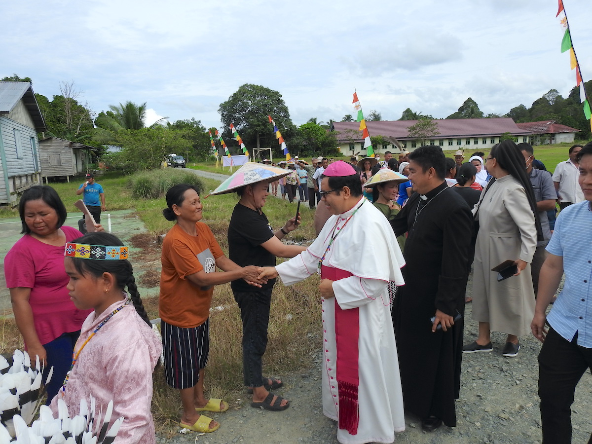 Ketika pulang seperti saat penyambutan, mulai dari pintu keluar aula umat berjejer sepanjang jalan. Bapa Uskup dan rombongan menyalami umat satu persatu sebelum pulang kembali ke Tanjung Selor.