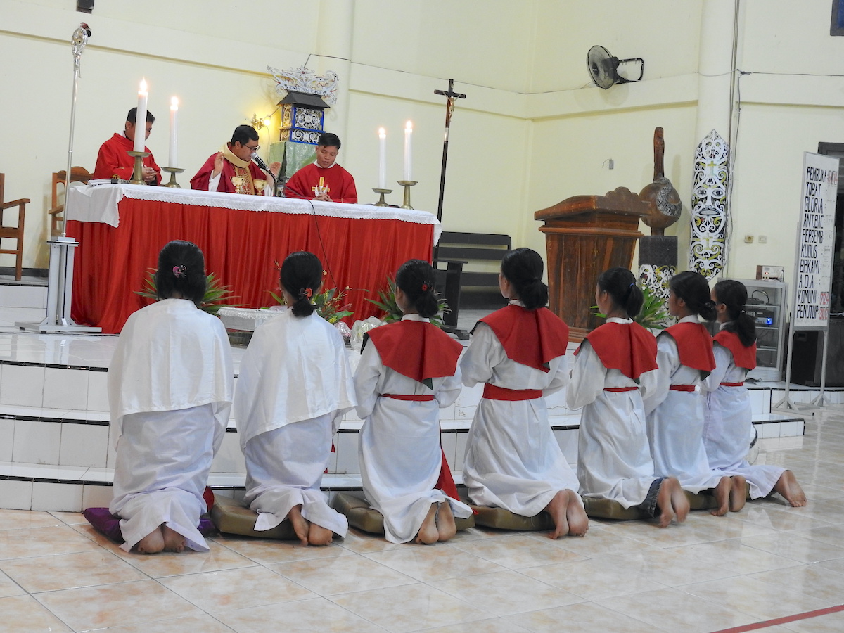 Perayaan Ekaristi dipimpin oleh Bapa Uskup Mgr. DR. Paulinus Yan Olla, MSF, bersama konselebran: RP. Agus Maming, MSC (Sekretaris Keuskupan) dan RD. Bernardus Moi (Pastor Paroki St. Petrus Mara Satu).