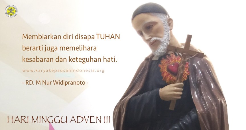 Membiarkan diri disapa Tuhan berarti juga memelihara kesabaran dan keteguhan hati. Bacaan II yang dikutip dari Surat Rasul Yakobus mengajak kita untuk bersabar dan berteguh hati menanti kedatangan Tuhan, “Saudara-saudara, bersabarlah sampai kedatangan Tuhan […] kamu harus bersabar dan meneguhkan hatimu karena kedatangan Tuhan sudah dekat!” Bersabar adalah salah satu keutamaan iman Kristen. Kita sabar karena yakin bahwa Tuhan sudah mendekat. Bersabar bukanlah sikap sekadar menahan-nahan diri, melainkan sikap aktif karena menyerahkan segalanya kepada Tuhan sebagai yang berhak bertindak sepenuhnya atas hidup kita.
