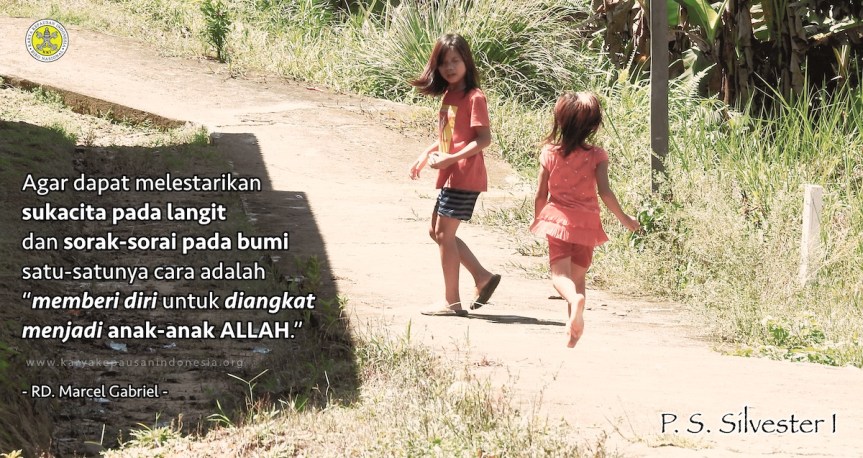 Agar dapat melestarikan sukacita pada langit dan sorak-sorai pada bumi, satu-satunya langkah atau cara yang tersedia adalah “memberi diri untuk diangkat menjadi anak-anak Allah”, dengan cara menerima Sang Firman yang telah menjadi manusia itu, yakni Tuhan kita Yesus Kristus, Anak Tunggal Allah yang menyatakan Allah itu kepada kita. Sebab hanya di dalam dan melalui Yesus Kristus inilah tersedia kesempatan untuk Adopsi Ilahi itu. Dengan kata lain, dengan menghayati dan mewujudkan janji-janji Baptis kita masing-masing, dengan melaksanakan Firman Allah, dan dengan ikut serta sepenuhnya dalam kehidupan sebagai jemaat Allah, orang-orang kepunyaan Allah.