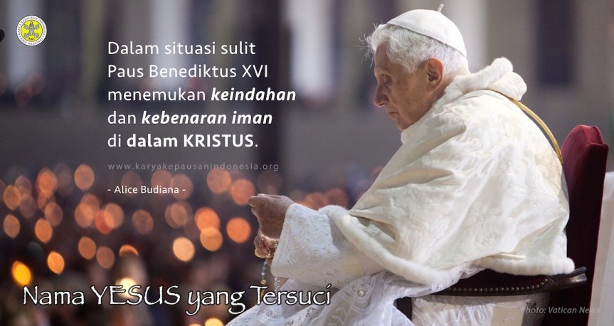 Kardinal Joseph Ratzinger/Paus Emeritus Benediktus XVI yang beberapa hari lalu berpulang ke rumah Bapa di surga, meninggalkan teladan iman yang luar biasa bagi kita. Masa muda yang dilaluinya tidak mudah. Pengalaman pahit di masa rezim Nazi berkuasa dan memusuhi Gereja Katolik, banyak pastor yang dianiaya. Namun dalam situasi sulit itulah, ia menemukan keindahan dan kebenaran iman di dalam Kristus. Dukungan juga didapatkan dari pihak keluarga yang senantiasa memberikan kesaksian tentang kebaikan dan harapan yang berakar dari keterikatan iman pada Gereja-Nya.
