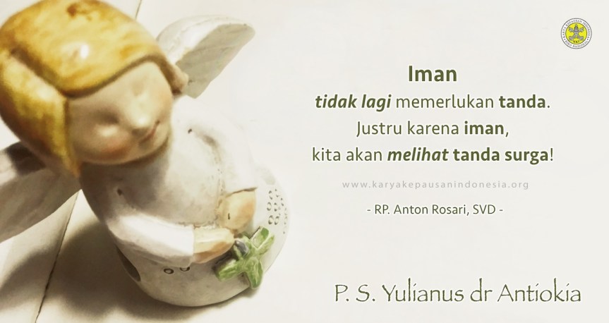 Iman semacam inilah yang diharapkan oleh Tuhan Yesus. Sesudah kebangkitan-Nya dari alam maut, Ia berpesan kepada Thomas: “Karena engkau telah melihat Aku, maka engkau percaya. Berbahagialah mereka yang tidak melihat, namun percaya” (Yoh. 20:29). Iman tidak lagi memerlukan tanda. Justru karena iman, kita akan melihat tanda surga!