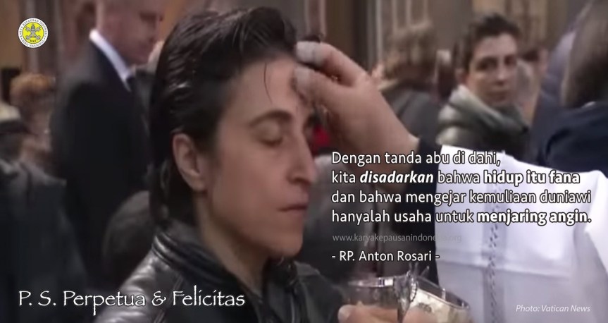 Masa Prapaskah adalah masa pertobatan. Pada hari, yang disebut dengan Rabu Abu, dahi kita diolesi dengan abu. Pada saat yang sama, kita telah mendengar kata-kata ini: “Ingatlah, engkau ini abu dan akan kembali kepada abu”. Dengan tanda abu di dahi, kita disadarkan bahwa hidup itu fana dan bahwa mengejar kemuliaan duniawi hanyalah usaha untuk menjaring angin. Dengan tanda yang sama kita memulai masa ziarah rohani kita dengan lebih banyak melayani, melakukan olah tapa, mati raga dan mempertebal iman kita agar menjadi serupa Kristus.