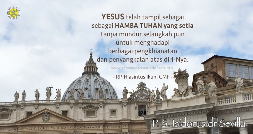Sesama sahabat misioner yang terkasih. Yesus telah tampil sebagai Hamba Tuhan yang setia tanpa mundur selangkah pun untuk menghadapi berbagai pengkhianatan dan penyangkalan atas Diri-Nya. Maka tindakan iman yang sejati adalah menderek militansi iman kita untuk berani setia pada Kristus yang telah mengikutsertakan kita sebagai sahabat dan partner kerja dalam membawa terang, perubahan, perbaikan dan keselamatan. Sikap iman untuk menegaskan kesetiaan kita pada Yesus tidak terletak pada bukti verbal yang kita sampaikan melainkan kesiapan kita untuk berada sangat dekat dan intim dengan Yesus serta bersandar pada-Nya.