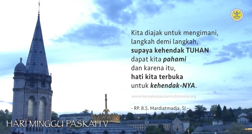 The Gospel reading, John 14:1-12, explains how Jesus encourages the faith of the disciples in God the Father who will definitely love humans. The process of “Walking Together” shows that we have to go through a long process to understand the meaning of the Lord’s communication with us. We are reminded again that The Lord Jesus is the “way, truth, and life”. Hence, we are invited to believe, step by step, to comprehend the Lord’s will, which then our heart is opened for His will. In our journey of life, we pray that we may believe how God the Father and God the Son unite in the power of the Holy Spirit. May our individual, family, and communal life be closer to Him.