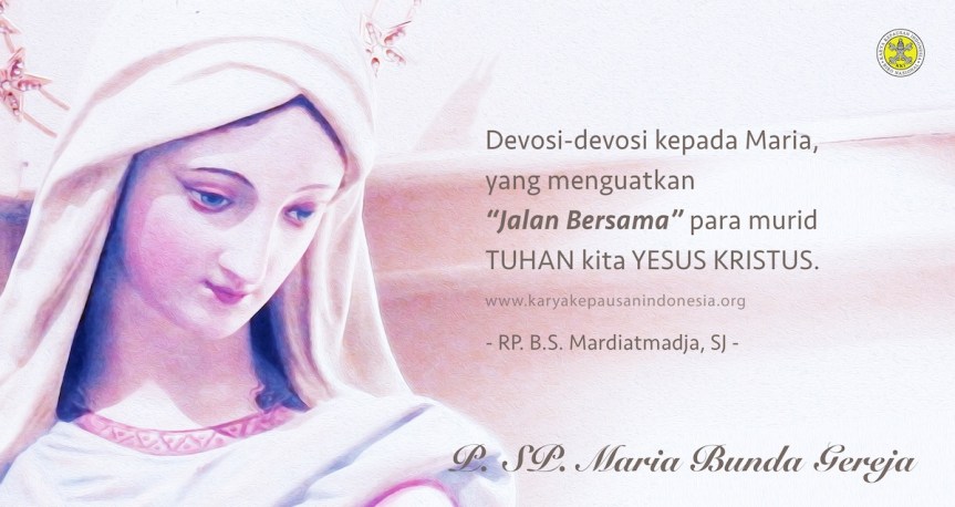 Bersama Santa Maria, Bunda Yesus dan Bunda Gereja, secara khusus aku berdoa bagi ujud-ujud Bapa Suci dan para rasul doa Gereja Indonesia untuk bulan ini: