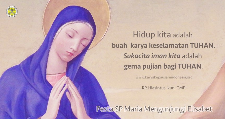 Sesama sahabat misioner yang terkasih. Kasih Maria mengunjungi Elisabet sejatinya menjadi kisah kita bersama yang percaya pada Kristus; yang lebih mengandalkan Kasih Tuhan serta mengakui semua perbuatan besar dan karya agung Tuhan dalam hidup kita. Maka panggilan kemuridan kita adalah panggilan untuk menanamkan sukacita dalam hidup kita, membuka diri pada tindakan Allah, mengakui semua karya Tuhan yang menyelamatkan kita.