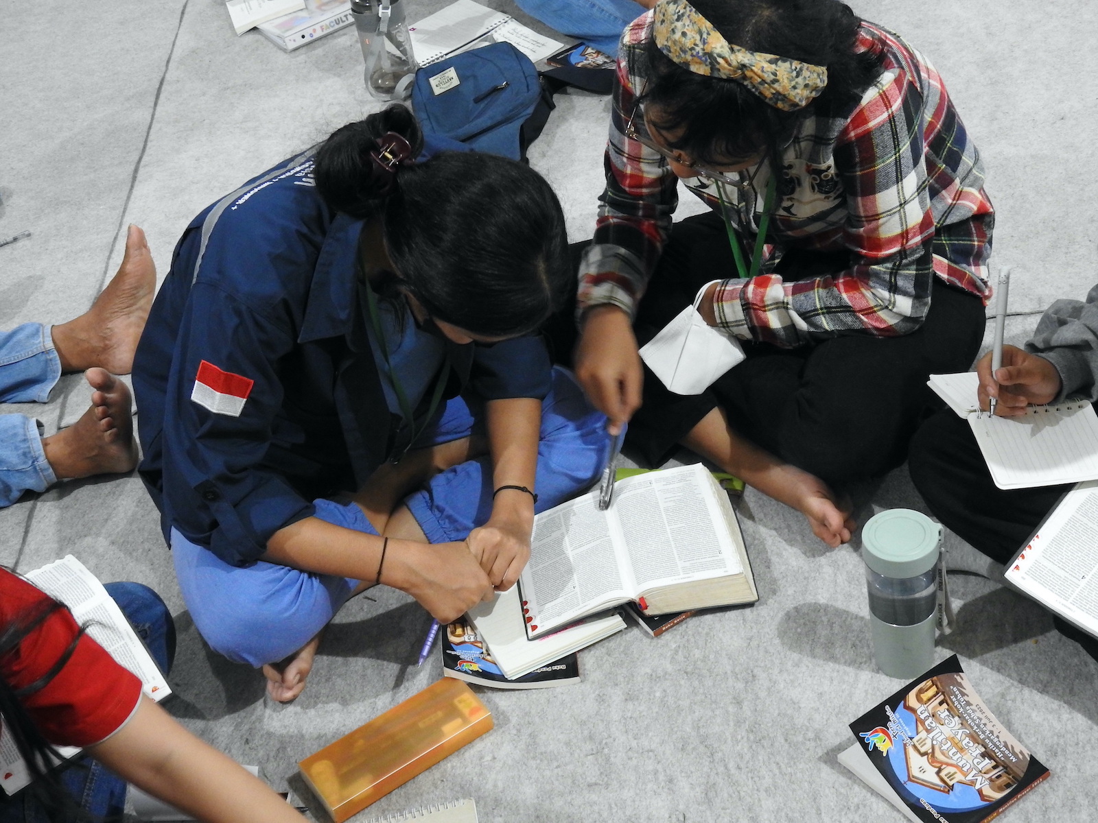 Sesi selanjutnya para remaja dibagi menjadi sepuluh kelompok untuk melakukan diskusi kelompok, menjawab beberapa pertanyaan. Sore harinya masing-masing kelompok maju dan memberikan sharing atas hasil diskusi mereka. Ada beberapa hal menarik yang secara jujur diakui para remaja T-SoM angkatan ke-3 ini bahwa mereka jarang membaca Kitab Suci karena lebih fokus pada gadget, tulisan pada Kitab Suci kecil-kecil dan sering kali mereka tidak memahami isi Kitab Suci. Para remaja juga secara terus terang mengatakan bahwa ketika mendengar khotbah di Gereja panjang dan tidak mereka pahami, mereka akan merasa bosan. RD. Yosefus Anting Patimura mengomentari bahwa ini merupakan kritikan yang akan mereka (para imam) perhatikan, agar isi khotbah dapat dibuat lebih jelas dan ringkas. Sesi ditutup dengan penjelasan dari RP. Martinus Nule, SVD mengenai metode baca Kitab Suci yang dapat dipergunakan para remaja: metode TAT (Teks, Amanat, Tanggapan). Metode TAT saat ini dipergunakan di Keuskupan Pangkalpinang. Para remaja diajak untuk langsung mempraktikkannya saat itu juga.