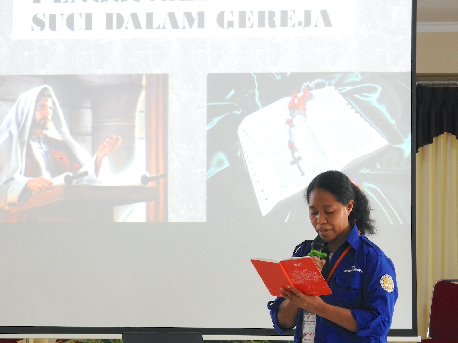 RD. Yosefus Anting Patimura, Dirdios Keuskupan Pangkalpinang membuka sesi semalam dengan menjelaskan sejarah dan isi Kitab Suci. Peran penting Kitab Suci dipaparkan Romo seraya memberikan contoh ayat-ayat terkait dengan aspek-aspek tersebut. Para remaja diajak terlibat langsung, membuka Kitab Suci dan membaca bersama. Kegiatan hari pertama ditutup dengan ibadat malam bersama.