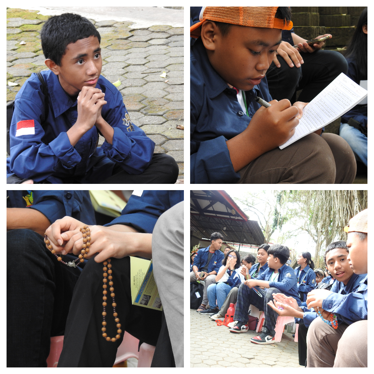 Para remaja yang jumlahnya hampir lima puluh orang, berangkat naik mobil mini bus bersama para pendamping dan Dirdios. Meskipun dengan transportasi seadanya, mereka tampak riang dengan kegiatan outing ini. Di museum dan perkuburan, anak-anak diberi penjelasan mengenai sejarah misi dan gerak para misionaris. Sementara di gua Maria Sendang Sono, anak-anak menghabiskan waktu lebih lama. Setiap kelompok dipimpin seorang Dirdios dan para pendamping. Para remaja diminta membuat refleksi mengenai kegiatan hari itu. Refleksi mereka kemudian dibacakan di dalam kelompok. Meskipun masih muda, bahkan ada yang baru akan masuk ke bangku SMP, refleksi para remaja cukup dalam, begitupun struktur penulisan dan penyampaiannya. Refleksi ini selain untuk membawa para remaja memiliki kesadaran akan pengalaman hidup mereka dan mendekatkan mereka pada Sabda Allah, sekaligus juga dapat melatih keterampilan mereka dalam menulis dan menyusun karya tulis.