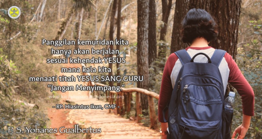 Namun panggilan kemuridan kita hanya akan bisa berjalan sesuai kehendak Yesus mana kala, kita menaati titah Yesus Sang Guru: “Jangan menyimpang …”, tetaplah di tengah jalan lurus dan jangan menciptakan persimpangan sendiri. Amin.