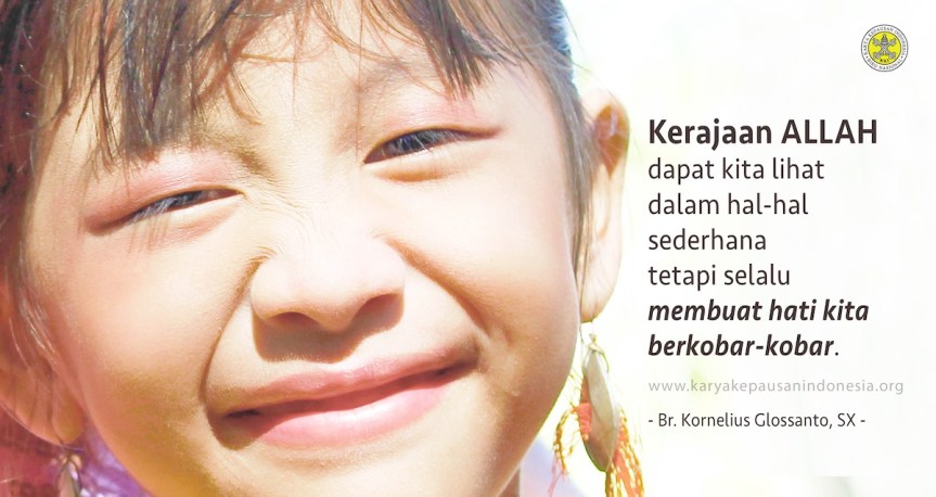 Saudari-saudara terkasih, Yesus ingin menunjukkan bahwa Kerajaan Allah bukanlah sesuatu yang akan kita alami setelah kematian, namun benar-benar sesuatu yang bisa kita alami dalam hidup kita sehari-hari. Kerajaan Allah bukanlah konsep abstrak yang tak terjangkau pikiran manusia biasa, melainkan sesuatu yang benar-benar konkret dan nyata dan bisa kita alami saat ini. Mungkin sebagian dari kita menemukannya dalam kehadiran anggota-anggota keluarga atau dalam diri para sahabat. Sebagian lagi mungkin kita temukan dalam pekerjaan atau pelayanan kita terhadap sesama. Atau tidak jarang pula kita melihatnya dalam hal-hal sederhana tetapi selalu membuat hati kita berkobar-kobar.