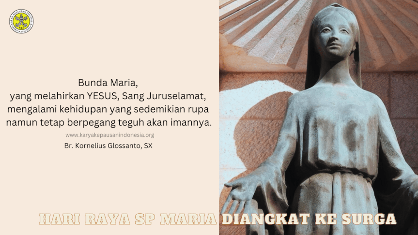 Apa yang dialami Bunda Maria dalam hidupnya sadar atau tidak merupakan cerminan dari kehidupan kita masing-masing. Bunda Maria, yang melahirkan Yesus, Sang Juruselamat, mengalami kehidupan yang sedemikian rupa namun berusaha untuk tetap berpegang teguh akan imannya. Itulah sebab-Nya Allah memuliakan dia dan mengkuduskan jiwa dan raganya. Bunda Maria merupakan teladan bagi kita umat Kristiani dalam mengimani Yesus Kristus. Betapapun kita tidak pernah benar-benar sendirian dalam mengalami kehidupan yang penuh lika-liku ini. Dan ketika kita mampu berpegang teguh dalam iman, kita pun akan melihat ‘perbuatan-perbuatan besar’ dalam hidup ini serta pada akhirnya bisa berharap memperoleh kemuliaan seperti Bunda Maria yang diangkat ke surga beserta jiwa dan raganya.