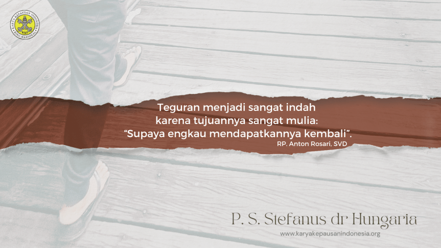 Warta gembira hari ini kembali menegaskan bahwa walaupun berat, menegur merupakan tugas yang sangat mulia, terlebih ketika dilakukan dengan tulus hati tanpa rasa benci. Musa, sebagai orang yang berat mulut dan berat lidah (Kel. 4:10) justru dipanggil Tuhan untuk menegur. Ia harus menegur Firaun, seorang raja yang sangat berkuasa, juga orang-orang sebangsanya sendiri yang terkenal dengan tegar tengkuk dengan menyembah dewa-dewa lain buatan sendiri. Ia mengalami berbagai penderitaan hebat karena hal ini. Baru sesudah Ia tutup usia, bangsa Israel menangisinya sampai tiga puluh hari lamanya.