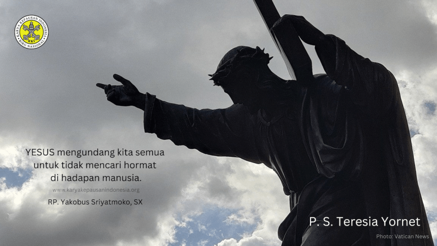 Dalam bacaan Injil yang kita renungkan hari ini, Yesus mengkritik perilaku para ahli Taurat yang meletakkan beban-beban berat bagi umatnya tapi mereka sendiri tidak melakukannya. Yesus juga mengkritik kebiasaan mereka yang hanya mencari hormat di hadapan manusia dan bukan dari Allah. Bagi kita para pemimpin jemaat dan bagi kita yang memiliki posisi penting dalam Gereja sabda Yesus hari ini mengingatkan kita untuk tidak hanya ‘berkhotbah’ tanpa menghidupi apa yang kita katakan, melainkan untuk menyelaraskan perilaku kita dengan apa yang kita ajarkan. Kalau kita melakukan apa yang kita ajarkan, orang lain akan tergerak untuk melakukan apa yang kita katakan karena mereka melihat teladan baik dari hidup kita. Kalau kita hanya omong doang, pendengar kita akan menyindir kita dengan ungkapan Bahasa Jawa, “Gajah diblangkoni, pinter khotbah ora iso nglakoni.” Pewarta dan pemimpin jemaat macam ini tidak credible alias tidak mutu. Yesus juga mengundang kita semua untuk tidak mencari hormat di hadapan manusia karena jika demikian, “kamu tidak beroleh upah dari Bapamu yang di sorga.” (Mat. 6:1). Kita diundang untuk lebih mencari hormat dari Allah daripada hormat dari manusia, “Bapamu yang melihat yang tersembunyi akan membalasnya kepadamu” (Mat. 6:6)