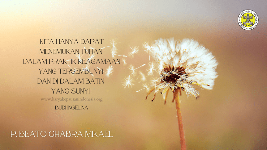 Jangan peralat agama demi kepentingan diri sendiri. Agama merupakan alat untuk mendekatkan diri kepada Tuhan. Di hadapan Tuhan, kita harus menanggalkan pakaian kemunafikan dan mengosongkan diri. Kita hanya dapat menemukan Tuhan dalam praktik keagamaan yang tersembunyi dan di dalam batin yang sunyi. Di mana hanya ada Tuhan dan aku saja. Jangan terjerat godaan masa kini. Jaga terus kebeningan hati. Jadikan pelayanan kita terhadap sesama sebagai tanggapan murni akan kasih Allah di jalan kesunyian publikasi. Cukup hanya diketahui oleh Allah saja.