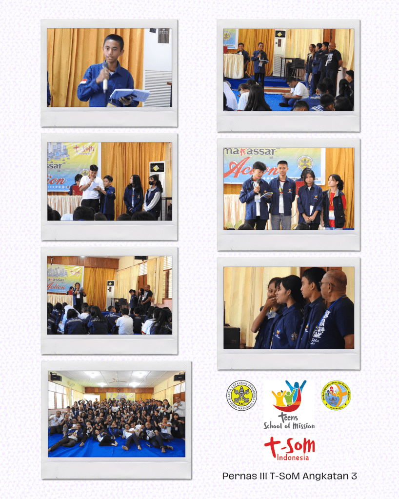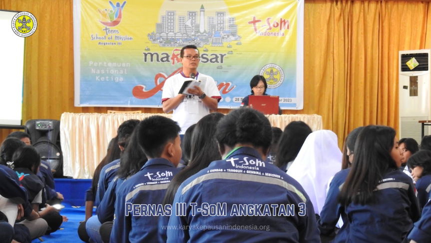Romo Nur mengingatkan bahwa Pernas T-SoM Angkatan ketiga telah dirancang sedemikian rupa dengan tujuan khusus. Pada Pernas I, yaitu: Surabaya Friendship, para remaja diajak membangun persahabatan dengan teman-teman mereka. Lalu Pernas II, yaitu: Muntilan Prayer, para remaja diajak membangun persahabatan dengan Tuhan. Sementara Pernas III ini, yaitu: Makassar Action, para remaja diajak membangun persahabatan dengan orang-orang pekerja atau lingkungan sosial mereka. Nanti pada Pernas IV: Mentawai Pilgrimage yang rencananya akan diadakan tanggal 21-28 Desember, para remaja T-SoM angkatan 3 akan diajak berbagi berkat dengan penduduk di Mentawai. Pada Pernas IV selain akan ditemani para Dirdios, para remaja akan didampingi langsung oleh Bapa Uskup Keuskupan Padang, Mgr. Vitus Rubianto Solichin, SX. Romo Dirnas berpesan agar para remaja menyiapkan diri dan menjaga Kesehatan mereka.