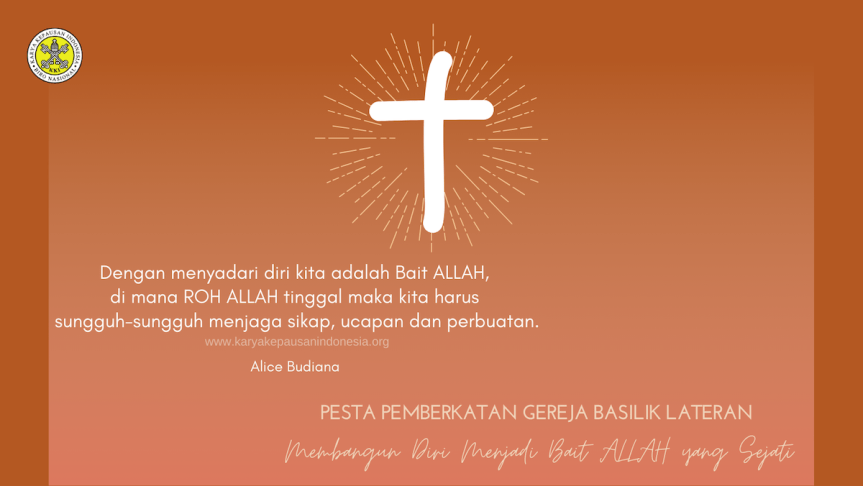 Hari ini Gereja Katolik merayakan Pesta Pemberkatan Basilika Lateran di Roma, yang merupakan Basilika agung yang pertama/tertua yang ada di Eropa pada masa Kaisar Konstantinus Agung (306-377 Masehi). Basilika Lateran yang diberi gelar Omnium Urbis et Orbis Ecclesiarum Mater et Caput: induk atau “ibu” dari semua Gereja di Kota Roma dan di seluruh dunia. Sebagai lambang kemerdekaan dan terjadinya perdamaian dalam Gereja setelah melewati masa penganiayaan oleh beberapa kaisar Romawi yang kafir. Basilika Lateran menjadi Katedral resmi bagi Sri Paus sebagai Uskup Agung Roma sampai sekarang.