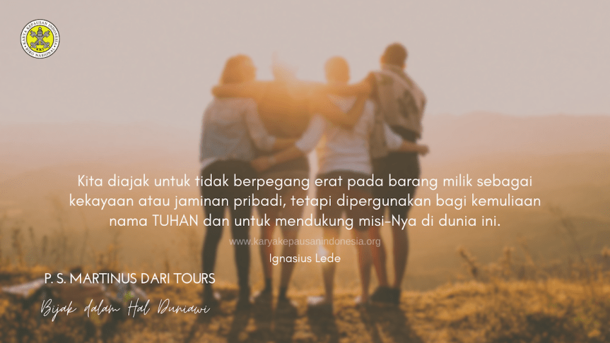 Sebagaimana Tuhan telah begitu murah hati dan dermawan di dalam hidup kita, hendaknya kita pun memandang diri kita sebagai pengurus barang milik Tuhan, serta bersikap baik, murah hati, tidak pelit, dan siap sedia untuk membantu orang lain serta menjadi semakin kaya dalam kebajikan.