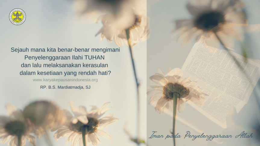 Refleksi kita: sejauh mana kita benar-benar mengimani Penyelenggaraan Ilahi Tuhan dan lalu melaksanakan kerasulan dalam kesetiaan yang rendah hati? Akhirnya, Daya Ilahi, yang akan menjaga keselamatan mereka. Marilah kita masing-masing dan bersama-sama berdoa: “Tuhan syukur untuk janji-Mu menjaga kami dan kami mempercayakan hidup maupun pelayanan kami semua sebagai anak-anak yang Kau jaga senantiasa”.