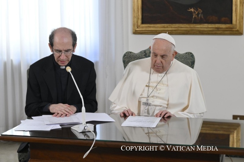 Hari ini saya masih belum bisa membacakan secara menyeluruh: kondisi saya sudah lebih baik, tetapi suara saya masih belum bagus. Mgr. Braida akan membacakan katekese.