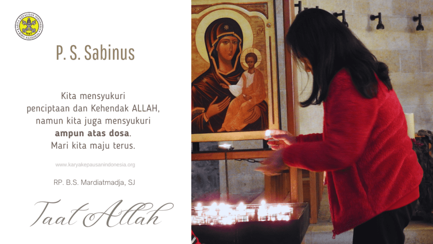 Refleksi kita: sekarang pun kita mensyukuri penciptaan dan Kehendak Allah, namun kita juga mensyukuri ampun atas dosa. Mari kita maju terus.