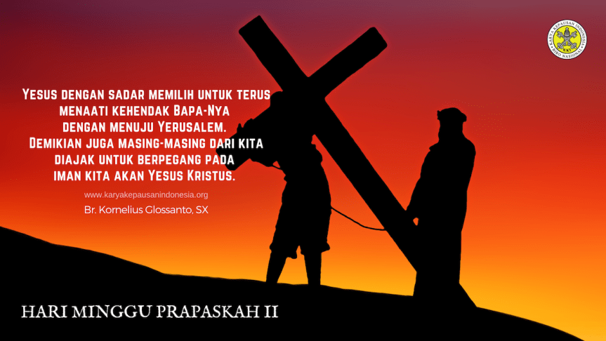 Through the first reading, we are invited to listen to the story of Abraham facing a difficult option. God asked him to sacrifice Isaac, his most beloved son. Despite it was hard, Abraham was firm in his decision to believe in God. For his firm belief, God blessed Abraham. We are also invited to reflect on the same thing in today’s Gospel reading. On the mountain, Jesus revealed His identity to Pete, James, and John. That was a great encounter for those three disciples. Peter even wanted to “prevent” Jesus from leaving Jerusalem. Despite it being difficult for them to understand Jesus’ ministry, they realized that Jesus would face a bad experience if He departed to Jerusalem. Yet Jesus reminded them to put God’s wish on top of everything, that’s to continue His mission by leaving for Jerusalem.