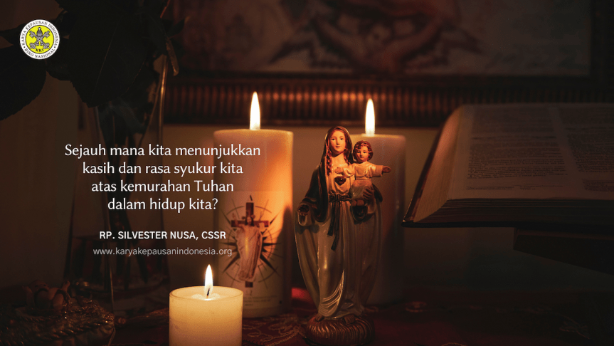 Pertanyaan refleksi: sejauh mana kita menunjukkan kasih dan rasa syukur kita atas kemurahan Tuhan dalam hidup kita? Marilah kita mohon kekuatan dari Yesus supaya kita mampu menunjukkan kasih dan rasa syukur kita kepada-Nya sebagaimana yang diteladankan oleh Maria, sekaligus memampukan kita untuk mengendalikan segala dorongan yang dapat menjadikan kita seperti Yudas Iskariot.