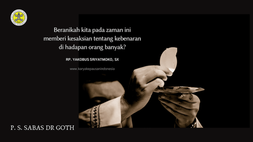Beranikah kita pada zaman ini memberi kesaksian tentang kebenaran di hadapan orang banyak? Kita pantas merasa bangga dengan kesaksian Romo Magnis Suseno di depan Mahkamah Konstitusi akhir-akhir ini. Tanpa takut beliau memberi kesaksian tentang kebenaran. Risikonya bermacam-macam: ada orang yang memberikan pujian, tapi tak jarang yang menghujat. Saya pribadi bersyukur kepada Tuhan karena pada zaman kita ini masih ada pengikut Yesus yang berani memberi kesaksian tentang kebenaran. Romo Magnis berani bersikap seperti itu pasti karena beliau sudah “mengalami perjumpaan” dengan Yesus yang bangkit dan karena beliau dipenuhi dengan Roh Kudus. Apakah Anda dan saya berani memberikan kesaksian serupa? ***
