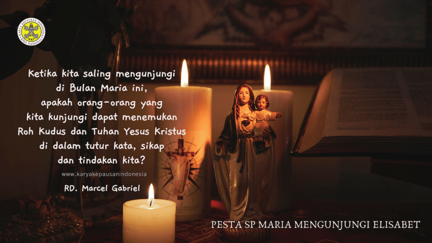 Pertanyaan refleksi untuk kita sebagai putra/putri Bunda Maria: ketika kita saling mengunjungi satu sama lain selama Bulan Maria ini, apakah orang-orang yang kita kunjungi dapat menemukan Roh Kudus dan Tuhan kita Yesus Kristus di dalam tutur kata, sikap dan tindakan kita?