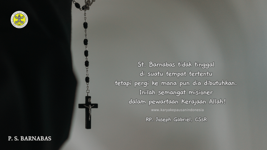 Namun, mengapa kita masih terlalu melihat ke dalam dan melindungi kepentingan sendiri? Mengapa kita belum siap memberikan apa yang telah Tuhan berikan kepada kita dan takut untuk melepaskan? Jawabannya adalah, karena kita kurang beriman dan percaya pada pemeliharaan dan kuasa Tuhan! Kita melekatkan diri kita pada hal-hal duniawi yang kita anggap memberi jaminan atas pemenuhan kebutuhan dan kebahagiaan kita. Untuk mengatasi ini, kita belajar dari keteladanan St. Barnabas yang digambarkan sebagai “orang baik, penuh dengan Roh Kudus dan iman” (Kis.11:24). Seperti Barnabas, kita dipanggil untuk terbuka terhadap kasih karunia Allah yang hadir dalam hidup kita dengan berbagai cara, khususnya dalam situasi yang kita anggap negatif atau sulit. St. Barnabas tidak tinggal di suatu tempat tertentu tetapi pergi ke mana pun dia dibutuhkan. Inilah semangat misioner dalam pewartaan Kerajaan Allah! Dengan keteladanannya ini, kita juga dipanggil untuk menghadirkan Kristus, sehingga semakin banyak orang pun akan mengalami kebaikan Allah karena menerima berkat yang sama melalui pelayanan kita. Semoga!