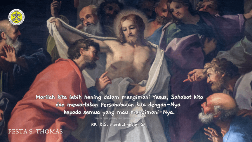 Bacaan Injil: Yoh. 20:24-29 memperlihatkan, bahwa baru sesudah peristiwa Kebangkitan, maka para Rasul, khususnya Thomas, lebih mengenal Thomas dapat mengenal Sang Mesias secara sungguh mendalam. Baru sesudah itu pula, ia dapat menyebut-Nya “Ya TuhanKu dan AllahKu”. Lalu penuhlah ungkapan imannya. Dalam kepenuhan itulah imannya menjadi panutan kita semua.