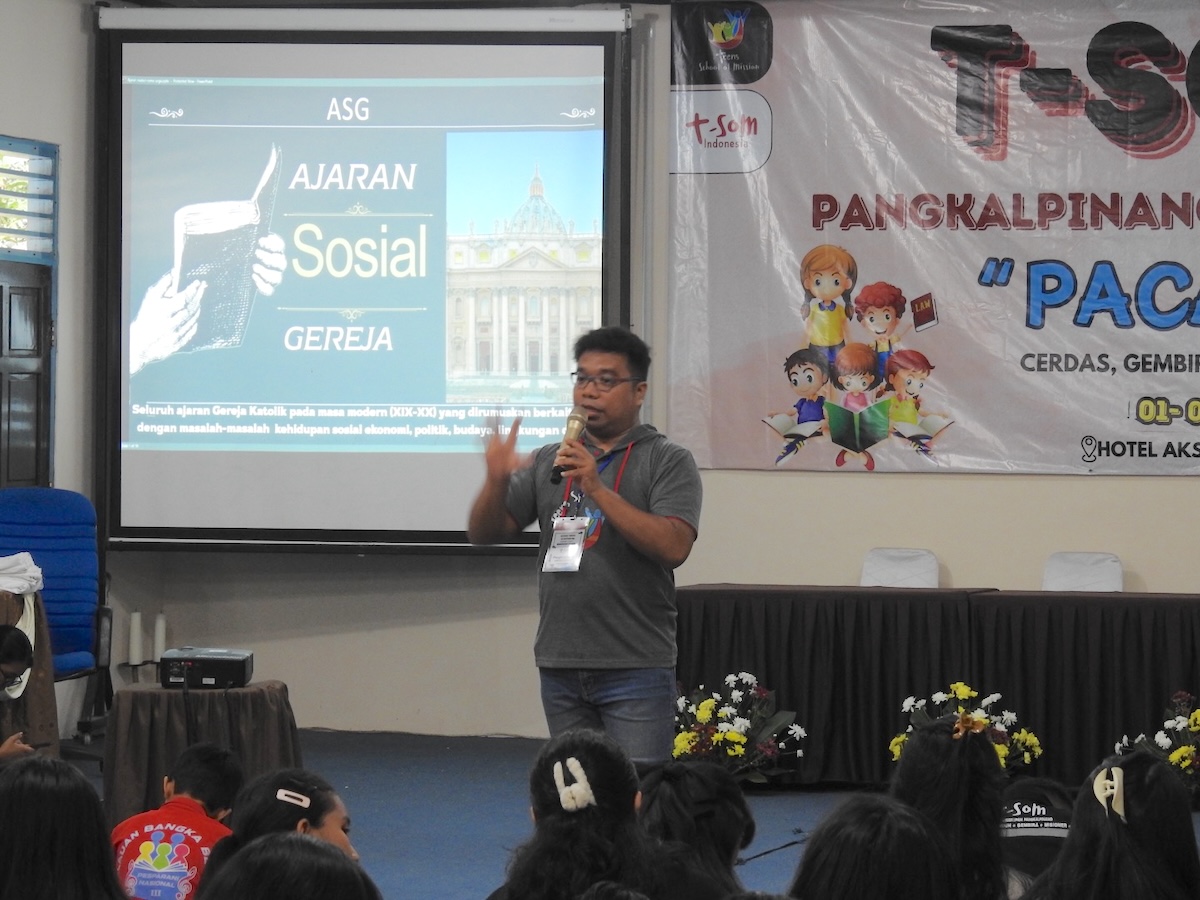 Pada sesi pertama kegiatan hari ini, RD. Yosef Segu Irianto, Dirdios KKI Keuskupan Bogor membawakan materi pendalaman Ajaran Sosial Gereja (ASG). Setelah pada Pernas I, para peserta T-SoM diajak untuk saling mengenal satu sama lain dan menjalin relasi antar peserta, pada Pernas II ini mereka akan keluar dan berinteraksi dengan orang-orang dari berbagai latar belakang berbeda. Seperti tema Pernas, yaitu: Action & Prayer, para peserta akan diajak beraksi langsung ke berbagai tempat kerja. Untuk itu para remaja dibekali dahulu mengenai pemahaman akan ASG. Diharapkan dengan kegiatan ini, para remaja dapat memperhatikan dan menunjukkan kepedulian mereka terhadap orang lain, dengan mengamalkan Ajaran Sosial Gereja.